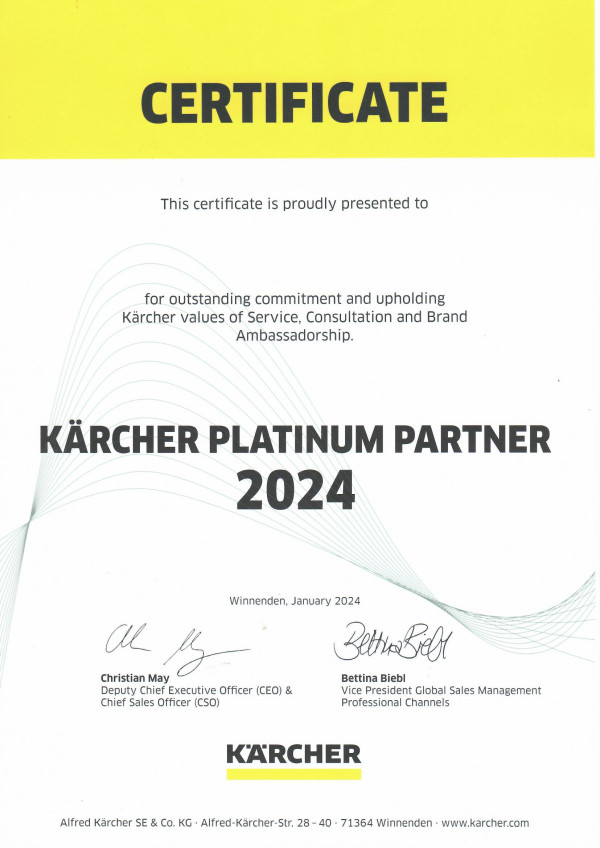 Sa velikim zadovoljstvom i radošću obaveštavamo sve naše kupce i poslovne partnere, da je KARCHER CENTAR MLAZMATIK od sada Kärcher Platinum Partner.